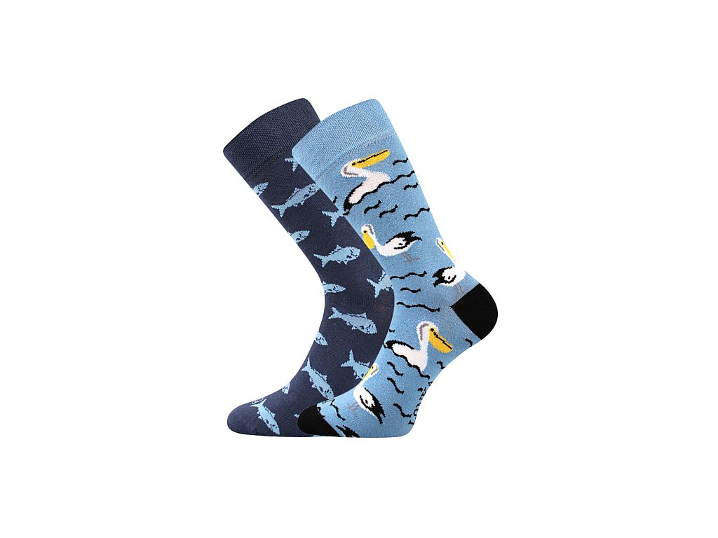 Lonka ponožky vtipné s obrázky "PELIKÁN+RYBA"