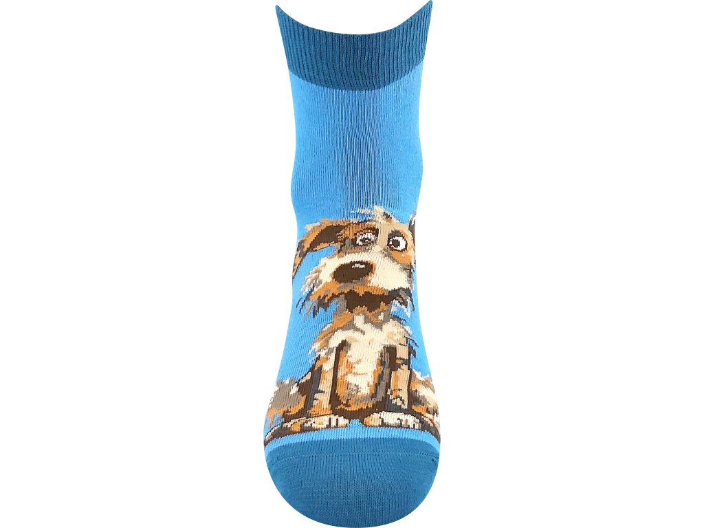 Středně vysoké ponožky nad kotník jsou z přírodní bavlny. Vtipné ponožky s motivem pejsků.