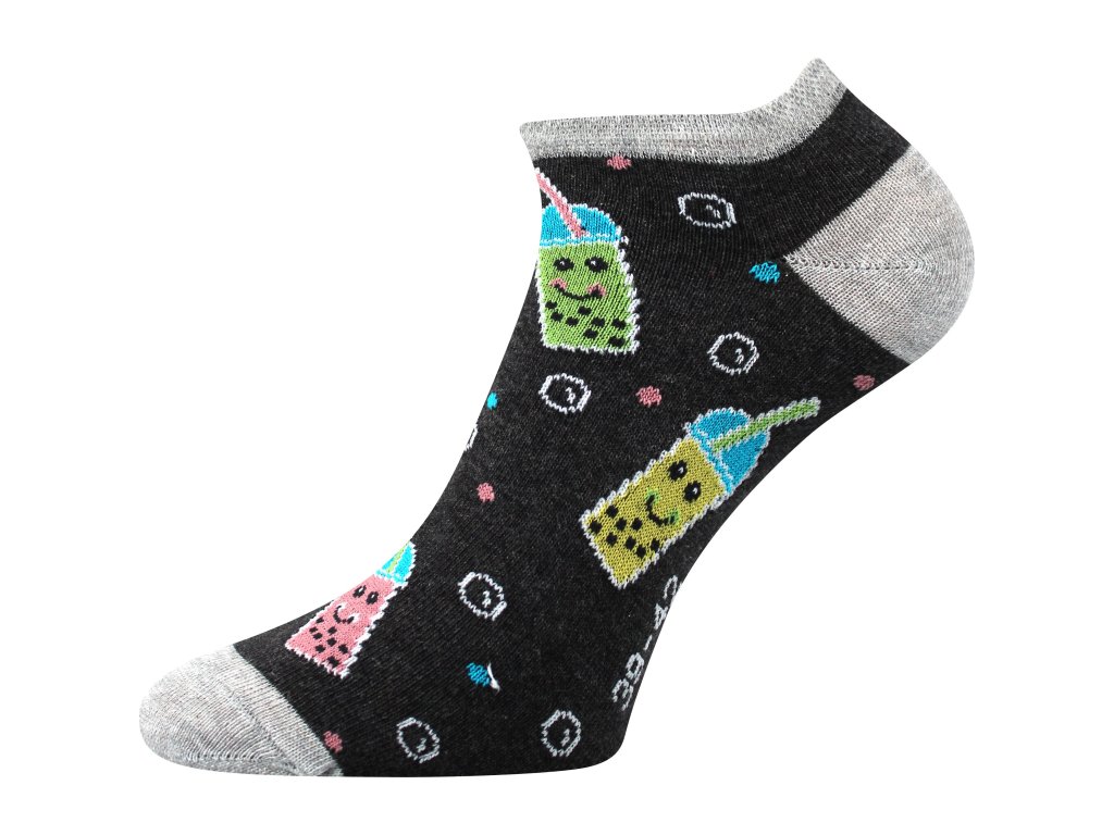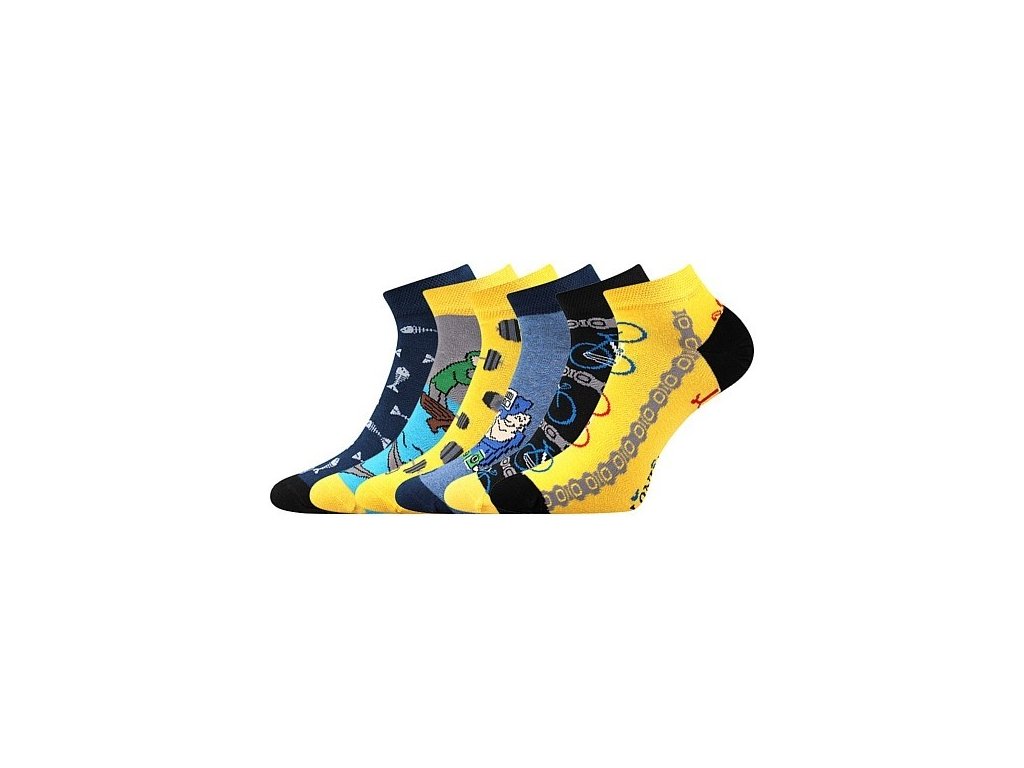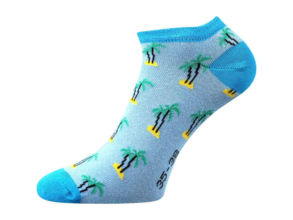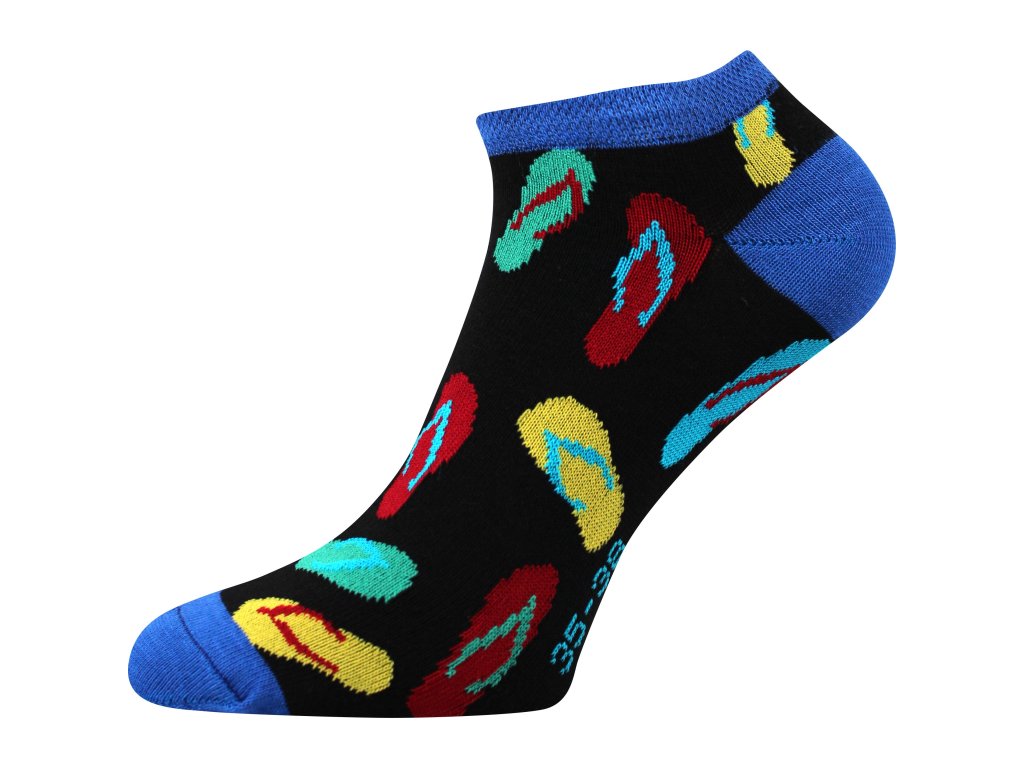 Mix veselých a vtipných obrázkových motivů na slabých ponožkách oživí váš prázdninový outfit. Díky vysokému podílu česané bavlny jsou příjemné na omak a výborně sají pot. Řetízkovaná špice nikde na prstech netlačí a nevznikají tak otlaky nebo puchýře.