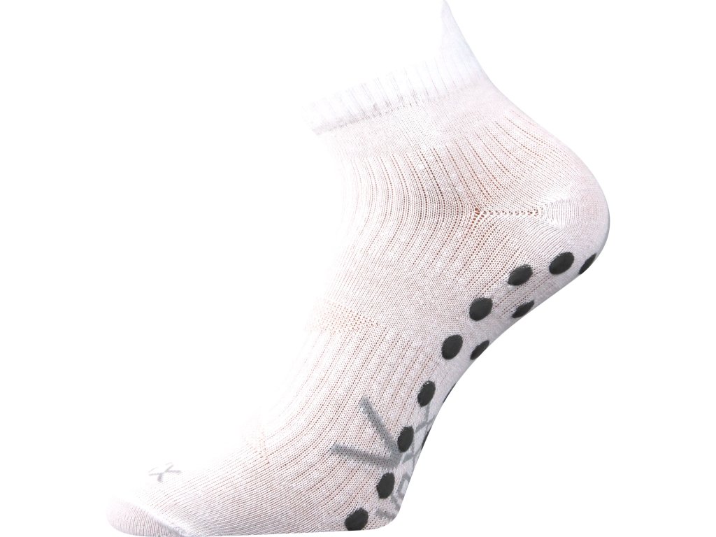 Vaše nohy budou nejen chráněné a v teple, ale díky protiskluzové vrstvě nemůžete uklouznout a dokonale splynete s podložkou. Cvičení tak bude bezpečnější a hygieničtější. Slabé ponožky s vyšším podílem bavlny pro dobrý odvod vlhkosti mají navíc speciální lem se zvýšením vzadu na patě, chránící citlivou achilovku. Aby se ponožky nepřetáčely, mají přes nárt elastickou část, která udrží ponožky na svém místě. Fitness ponožky jsou v teplotní třídě A od +10°C do +35°C.