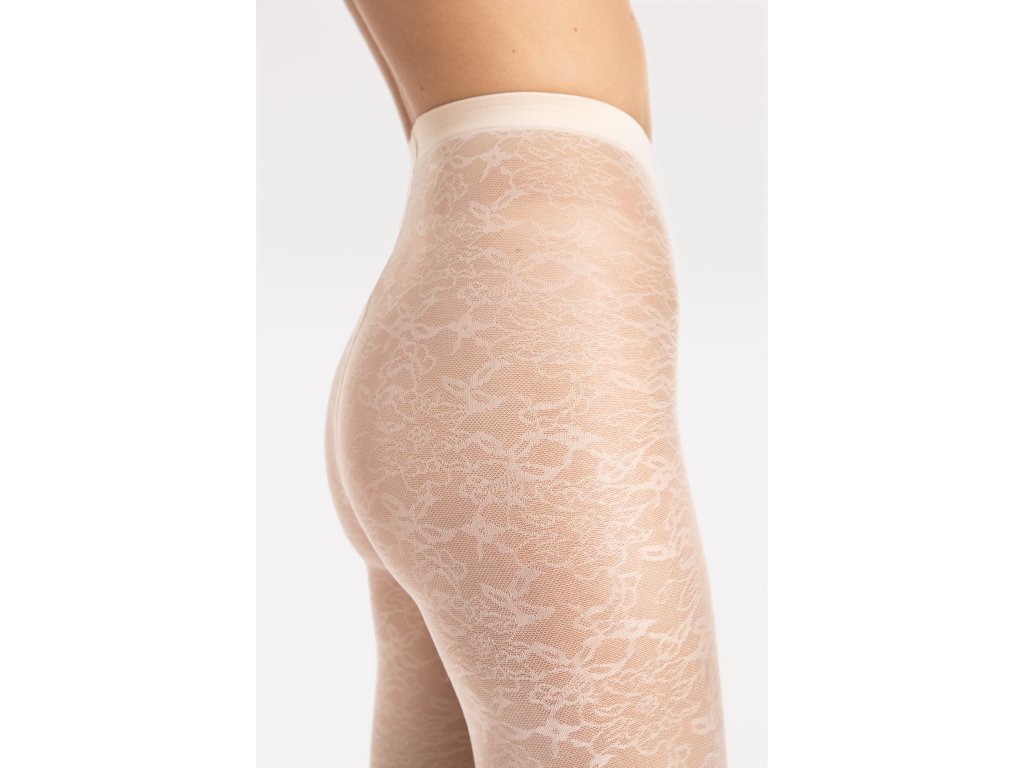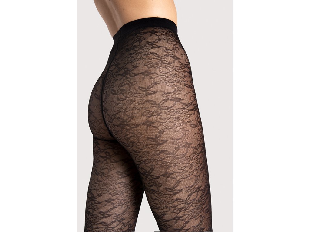 Punčocháče 30 den s květinovým vzorem, který se rozprostírá po celé délce nohou i v kalhotkové části.